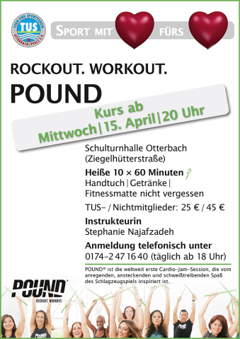 Dem TUS Otterbach ist es gelungen, mit Stephanie Najafzadeh eine PILOXING-Übungsleiterin zu gewinnen. Ihr nächster POUND-Kurs in Otterbach startet am